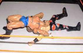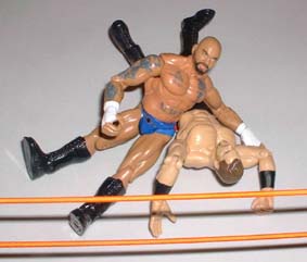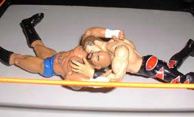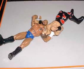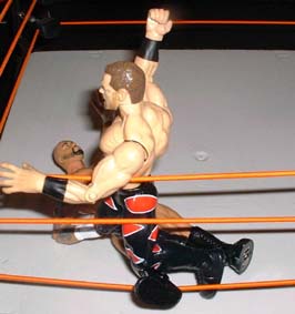 Benoit manages to take Saturn down, dropping him neck first onto the ropes.