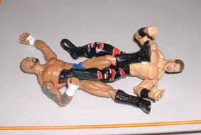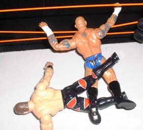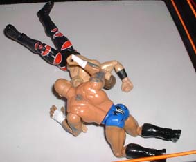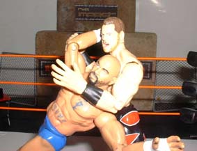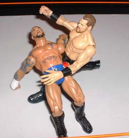 Saturn fights back, whipping Benoit into the ropes and hitting a side-walk slam.