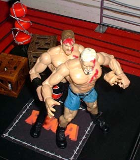 SMASH!! Raven goes head first into the floor and can.
