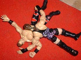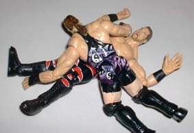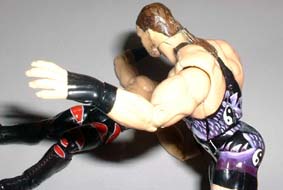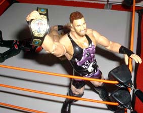 He drags Benoit back into the ring and then takes to the ropes again, hitting a flying elbow.