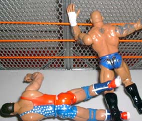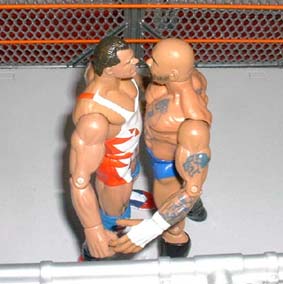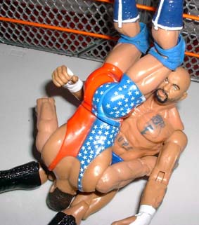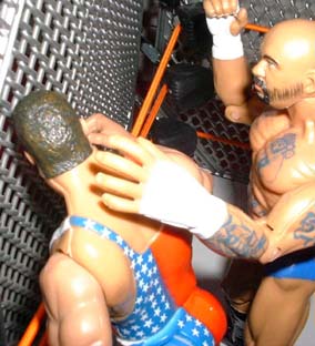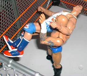 But Kurt uses a drop toe hold to slam Saturn into the steel.