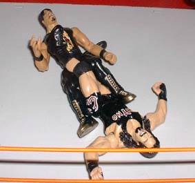 Eddie comes off the turnbuckle with a cross body.