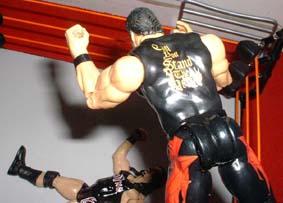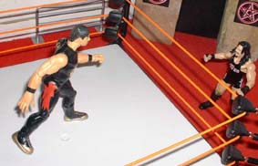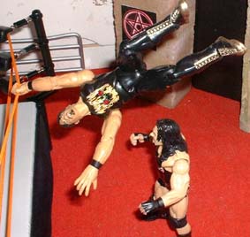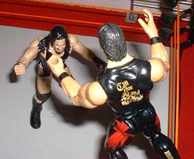 Rhyno trys to grab Eddie for a suplex, but he counters into a DDT.