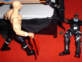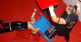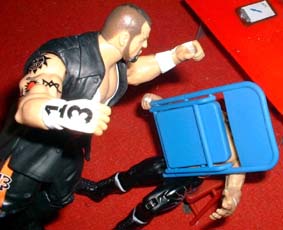 Tazz stomps a chair into Ravens skull.