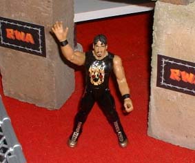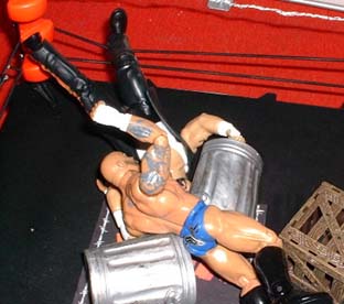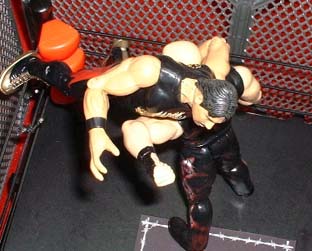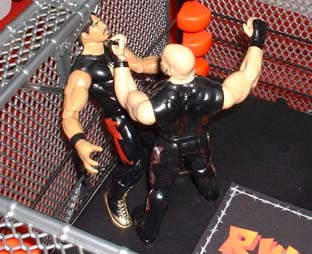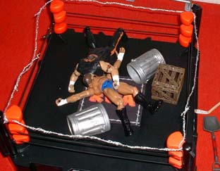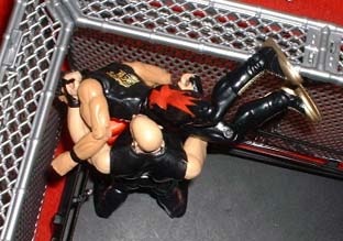 Here's the ring set up for our second match, a cell match, victory is by pin fall, the cell is just there to add an extra element of danger.