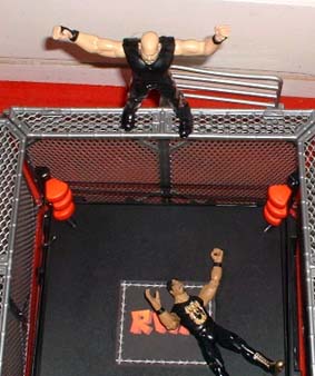 Oh my, he goes for a huge moonsault.