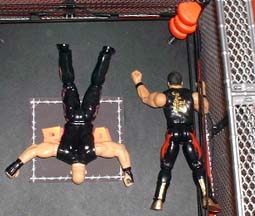 Eddie goes to the 2nd turn buckle...