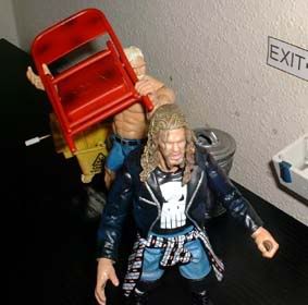 hammers him with a chair