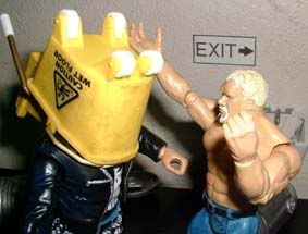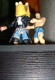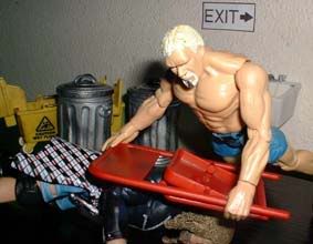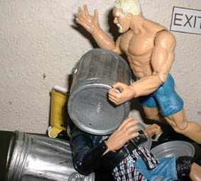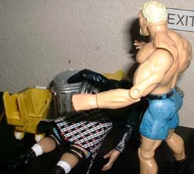 throws him into some trash cans