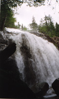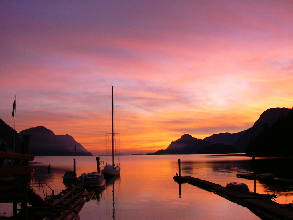 of the lake.. a waterfall on the other side, a sunset and early morning
