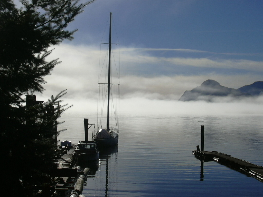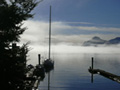 fog taken from the breakwater, a shot looking down at the landing and