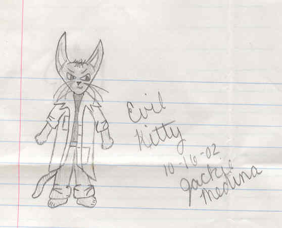 11/29/02 Evil Kitty - This is the improved version of the 11/24 Evil Kitty. 11/29 Evil Kitty just has a better overall look to him, while maintaining his evilness. The only thing is... Have you notice his signature's gotten... better? I don't have bad doctor handwriting skills. *sigh*