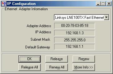 Go to Start, Run, and type "Winipcfg" (without quotes)