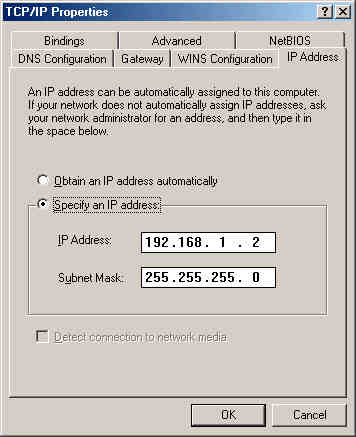 In the IP address field type an IP in the 192.168.1.xxx range with a subnet mask of 255.255.255.0. Remember each device on the network must have a unique IP address.