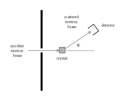 A beam of these neutrons is incident on a crystal. Scattering is observed, with the particular angles that the neutrons scatter off the crystal determined by interference effects between the waves scattered off different atoms. The smallest scattering angle found is F = ° from the initial direction as shown in the figure above.