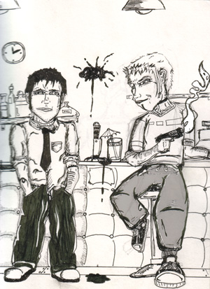 This is the rought draft of the cover for the comic book I will (emphasis on WILL) work on this summer. I hope to have it done before I leave for college, but I suppose I shall see if that's realistic or not.