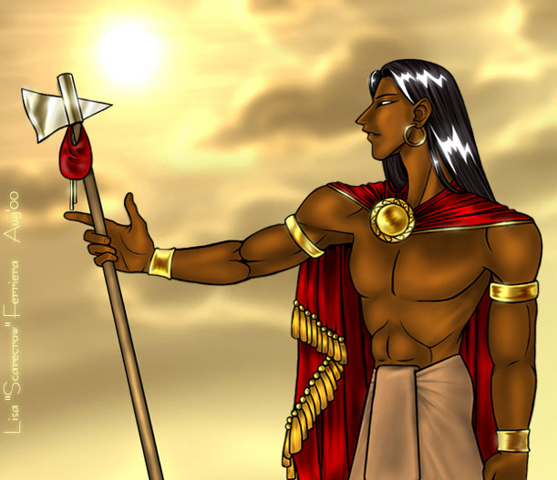 This is my depiction of the mythological side of the sun god Inti. After researching him a little bit, I decided to draw him as the Inca people might have seen him. I was surprised how little information on the web there was about Inca mythology. Maybe I was just looking in the wrong places, but I found more on Toltecs, Olmecs and Zapotecs than I did on Incas. So I didn't have a full body description to work from, but this was the picture that came of my research.