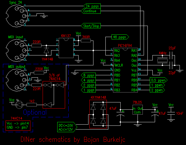 From the PIC, the 24 ppqn tempo, Start/Stop,