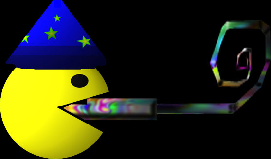 Here is Pac-Man with a party hat and one of those noise-maker things. Again, don't argue just take it as it is. |