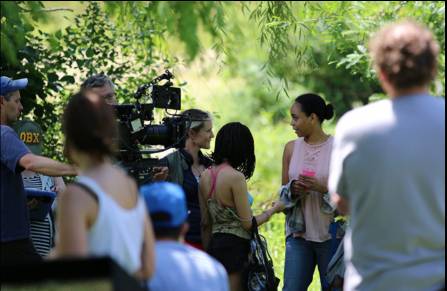When putting the new Cable Television schedule together, I found the IMDB page for the Stockade Works production of The Rest of Us, an independent film about a mental health crisis on a college campus. The following are some photos during the making of the film with Stockade Works foundress, Mary Stuart Masterson consulting with the crew during filming, and watching the "rushes" of recently filmed scenes. Enjoy the scenery of Upstate New York that provided the backdrop for the film.