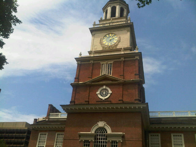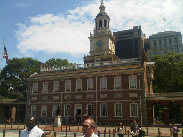 Just this past week, from June 13 until June 18, 2010, I attended a continuing professional education seminar in Philadelphia. I've been to the city many times, including a 1995 visit to the hotel we stayed in during the seminar, the Hyatt-at-the-Bellevue, or the old Bellevue-Stratford on Broad Street, which is in the Arts and Theater District. In fact, there is a Walk-of-Fame, that includes what appears to be copper plaques displaying the names of many noted Philadelphia performers in motion pictures, theater, popular music, and television. I took several close-ups of those, but they will have to be posted in a separate display later. Some of my friends were along, including "Peppermint Patty," "Mr. Keith," and many others who have not been mentioned anywhere in the Back Office. When we toured the historic sites, like Independence Hall, Carpenter's Hall, and the Constitution Center, I used my Blackberry to take those photos, so they are displayed first. The Walk-of-Fame display will have a plaque and a photo of the subject of the plaque right next to it. I couldn't use the Blackberry for those photos, but an analog camera as the Blackberry was losing its charge and I forgot to pack the charger. I did bring enough socks this time!