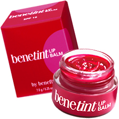 BeneFit 'Benetint Lip Balm'...a delicate blend of vitamin E, SPF 15 and a light rose-petal fragrance protects and innocently colors lips.