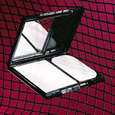 Hard Candy Eye Shadow Compact in 'Techno' gun metal and silvers with names like 'Trash", 'Void' and 'Jailbait'.