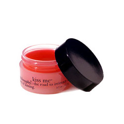 Philosophy 'Kiss Me Red'...a super emollient lip balm for soft, supple, world-class lips, with a hint of red for a just-kissed glow. Protects and soothes with vitamin E, kiwi, and sweet almond oil.
