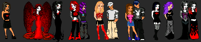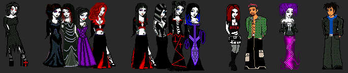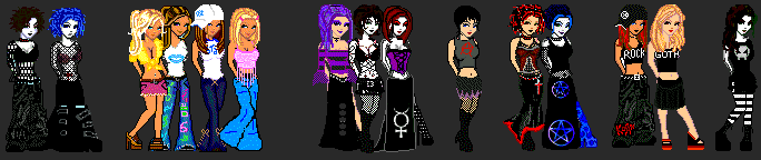| A. The Misfit. - She's a very nice girl, a little awkward, hasn't gotten the hang of dancing yet. Tries too hard to dress the part. B. The Nitpicker. - She's one of the core members of the popular cliques. It's her job to notice anyone's and everyone flaws, and promptly point them out. B1. Ms. Us and Them - Another core clique member, who thinks everyone outside of the clique makes no difference anyway (although she's the first one to listen to the Nitpicker) and knows that universal gothness rests with her exclusive group. B2. The Tormentor. - She can act nice, but it's only an act. She has other agendas such as causing embarrassment to those the clique opposes. B3. The Pretty Girl. - She doesn't have much substance outside her looks. She's always the prettiest of the bunch, and prides herself on her wardrobe. Here we have a rival clique of popular people. There's always more than one, and they usually have factions associated with specific clubs, bars, coffee shops, or dance nights. C. The Judge. - She dresses impeccably, never seen in the same outfit twice. She's the princess of the group, and is usually involved in making biting comments about others and how pathetic they are, often to their faces or at least loud enough for them to hear. |