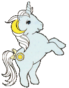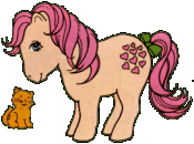 Yes, I was practicing to be a freak even back then. I collected over 30 of the My Little Ponies, and had a great number of the buildings like the Pretty Parlor, the Stable, the Castle, the Sprinkly Cloud Thing, and my fav, the mansion complete with pool. I took the ponies to school, to bed, to the beach with me. They were my first and favorite obsession. In my pre-teen days, I sold almost all of them at a garage sale, saving a handful for myself. I wish today that I still had them all. I miss that stupid plastic smell they had when you first opened the package and I am convinced that these toys are the reason I want my hair to be unnatural colors.