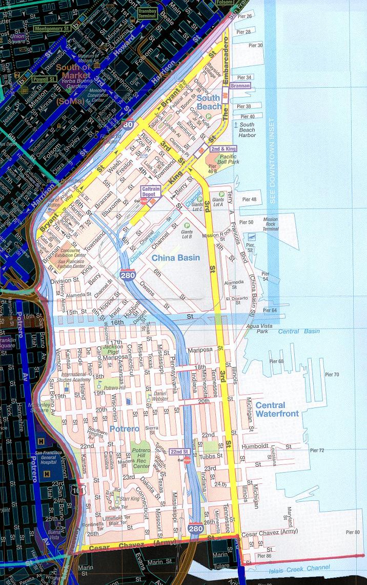 Once the port to San Francisco's industrial factories and even cruise ships this area is relatively abandoned due to the de-industrialization of the city. Once the site of the deadliest labor uprising in 1930's the many warehouses are now being converted into cheap housing and offices. The Central Waterfront's Pier 70 is still used as one of the country's largest ship building sites. It is not a safe area to be at night.