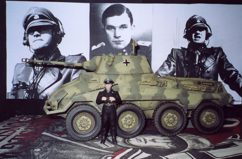 SS STURMBANNFUHRER GERD BREMER. Gerd Bremer was decorated with the Knight's Cross of the Iron Cross on 30 October 1941, while commanding the Reconnaissance Battalion of the Leibstandarte. The very mobile nature of the Reconnaissance troops meant that they were often to be found at the very forefront of the fighting and this was certainly the case with Gerd Bremer and his unit. During the early days of the Eastern campaign, Soviet forces were retreating faster than the Germans could advance. Bremer's unit raced after the retreating soviets, and in one single engagement captured over 500 prisoners and a hoard of military equipment. Gerd Bremer's unit stormed on through two soviet defense lines and outflanked a third, penetrating into the enemy town of Mariupol, Russia. This impetuous daredevil attitude was to typify Bremer's style of leadership. His reputation as a fearless daredevil continuing to grow. In 1943 Gerd Bremer was transferred to the newly formed 12 SS Panzer Division Hitlerjugend and given command of the division's Panzer Reconnaissance Battalion. The reckless bravery of the young Grenadiers of Hitlerjugend is well known and Bremer's style of leadership was ideally suited to these fanatical young men. In the Falaise Pocket, some nineteen German divisions, including the remnants of six SS Panzer Divisions were trapped. There was a narrow exit about 24 miles across through which the survivors were pouring as quickly as they could in the face of the devastating allied air attacks. Hitlerjugend was principally responsible for holding open the northern end of this corridor until the flow of Germans trying to escape ceased. The allies soon found out about this German breakthrough and steps were taken to block such an exploitation. However; such an exploitation had already been taken; and primarily by one man: The commander of Hitlerjugend's Panzer Reconnaissance Battalion SS Sturmbannfuhrer Gerd Bremer. Driving up the Caen-Falaise road that morning to reconnoiter, Bremer had suddenly encountered the allies streaming towards the corridor to close the trap. Like a Mythic Teutonic warrior; Gerd Bremer posted himself in the highway, challenged the oncoming allies, unleashing all the Reconnaissance firepower in all its fury and drove back the panic-stricken allies in total disorder. Through stinging counterstrokes, the 12th SS Reconnaissance unit bolstered by a handful of SdKfz 234/2 PUMAS and SPW SdKfz 251D/9 STUMMELS under the leadership of Gerd Bremer was able to bring the enemy advance to a halt in a successful delaying action, long enough to permit thousands of German troops to make good their escape. In a final gesture of defiance, Gerd Bremer and a small party that included his adjutant Kurt Buckheim made good their escape from the pocket, proud and defiant. In recognition for his outstanding and extraordinary exploits upon the field of battle, Gerd Bremer became the 668th recipient of the Oak leaves to his Knight's Cross on 25 November 1944. The Hitlerjugend Division was exhorted to mount and assist on the defense of the Reich against the "Anglo-American Gangsters" in the west, and the "Bolshevik Rapist Hordes" in the east. These young Grenadiers, the oldest among them was barely 18, these youths have not yet learned to live, but God knows, they understood how to die!... Grinding tank tracks brought their young lives to an end in a concert of death. With fresh, radiant faces they had marched into battle, and have endured the powerful hammer blows of the bloody brutality of war. At the critical age when they were just beginning to feel the pulse of life, were set face to face with death. The boys of the 12th SS Panzer Division Hitlerjugend were plunged into the abyss of blood and darkness that is modern total war. Too young to fear death, yet old enough to face it and die.