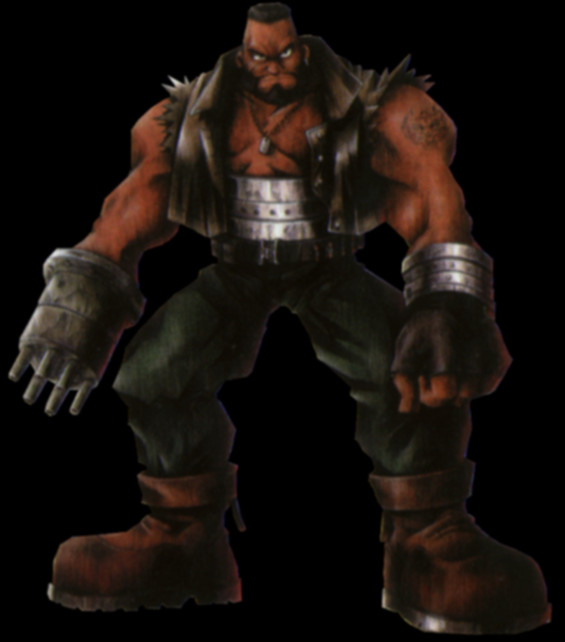 Barret Wallace Blaming himself for the destruction of his home village, Corel by the Shin-Ra, Barret has made it his mission to stop the Electric Power Company from destroying the planet at all costs. To this end he is the leader of the resistance group, Avalanche. He is hard, tough, and relies on his strength, unyielding resolve and gun arm to see him through to the end. His wife was killed in Corel, but his daughter Marlene survived, and is the most important thing in his life, even more so than saving the planet from the Shin-Ra and Sephiroth. Through the entire story, there is no greater friend, or reliable ally than Barret Wallace. |