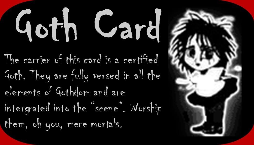 The Goth Card, at last you can prove to all your friends that you really are an official card-carrying Goth!!!!