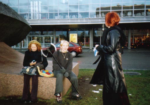 Jemppu, Sindera, Mila. This is the Gathering Statue between the theater and the library.