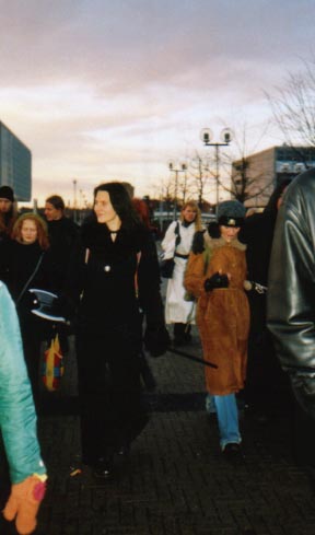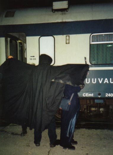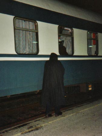 Ono scaring passengers at the railway station.