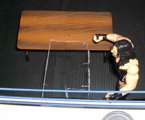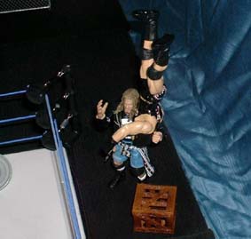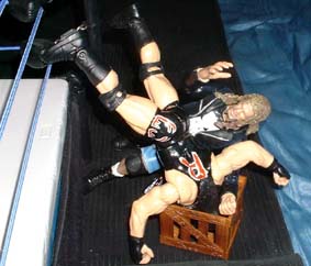 Raven pulls out a wooden crate, then lifts Rhyno into a high suplex.