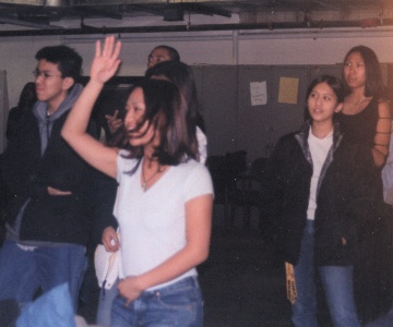 [Scene la: "Lonely girl" Players shout insults at a girl -- or boy -- who thought those who lash out at her were her friends.]