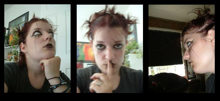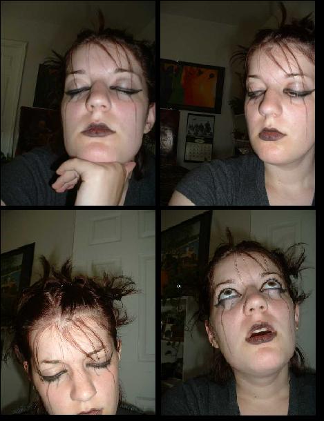 For some reason, the flash didn't go off on the lighter two pictures, so my room is white... I like the darker ones better. But I do like the middle one because I think I look a little ghost-like, don't you agree?