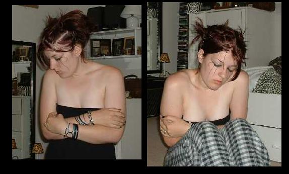 A couple pictures of an insecure little gothic girl hiding in her room holding herself trying to rid her mind of the voices surrounding her...