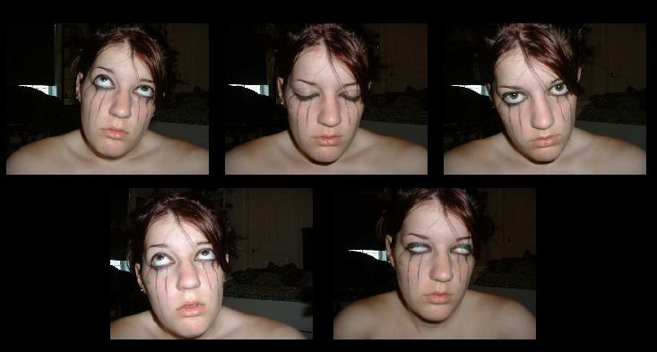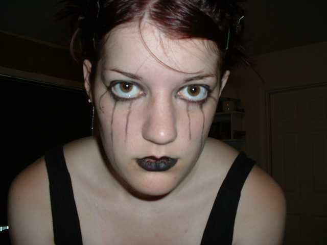 I put on more makeup, if you couldn't tell, and took more pictures. Here's a really close up pic. I kinda like the addition of the black on my lips, finishes the look, in a way.