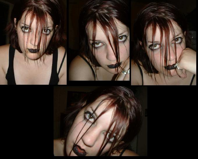 I kinda like these cause they're not normal shots, I mean, not so often that you see side shots and half of a person's face, right? I took like 4 pictures of my eye, doing different stuff in each. If you wanna see just ask, I think they're kinda cool, and i have another really close up one of the top part of my face, like mostly just my eyes and bangs.