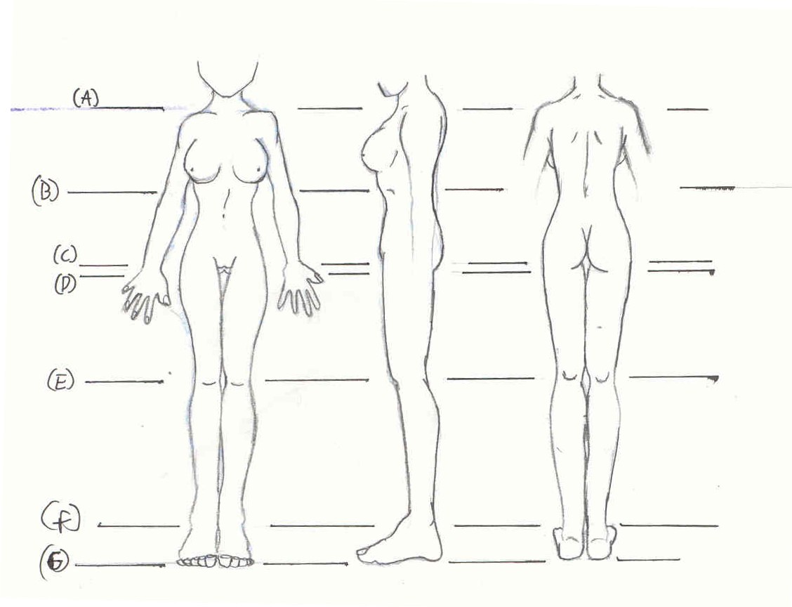 (B)---rib line--marks the bottom of the ribs> the breasts should