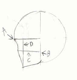 here i drew a new line (c) it come from the bottem of the incurved lineand angled... that will give it perspective...ok.. what do all the line represent??..... fine if you must ask.. |