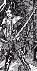 i got this tattoo in august of 2003. i really admire the victorian independent comic art of dame darcy, so i got a sketch she drew tattooed on the inside of my right calf. the original picture...
