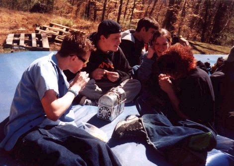 'Tis I in the middle... That was last year sometime, notice the shortness of the hair... ::shudders::