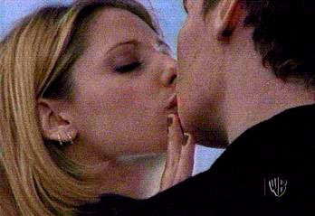They look at each other, then Buffy leans in and kisses him. They kiss softly for a moment. Then it gets a little more heated and they pull away, both breathing harder.