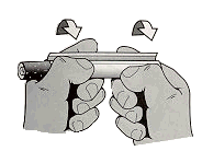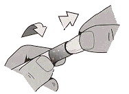 squeezing at its base and rotating between finger and thumb. Eventually