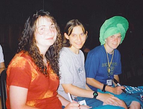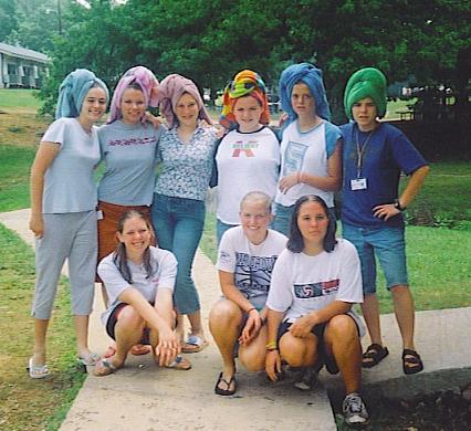Magali, Sarah, and Elizabeth after wet-heads...why does Magali have a towel wrapped around her??