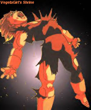 Vegeta in level 4, his giant golden Oozaru form in the back